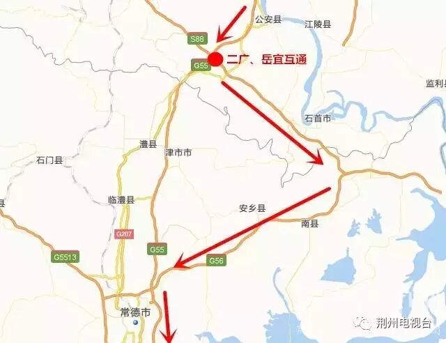 1、小型车辆从二广高速公安收费站下高速→走207国道→湖南澧县复兴场上G55二广高速继续南下;