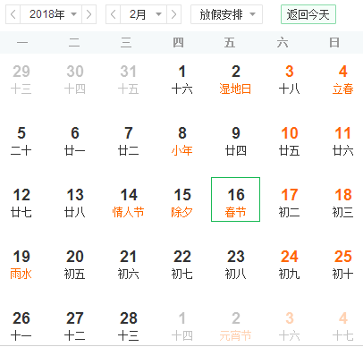 2018年的情人节、除夕、春节,