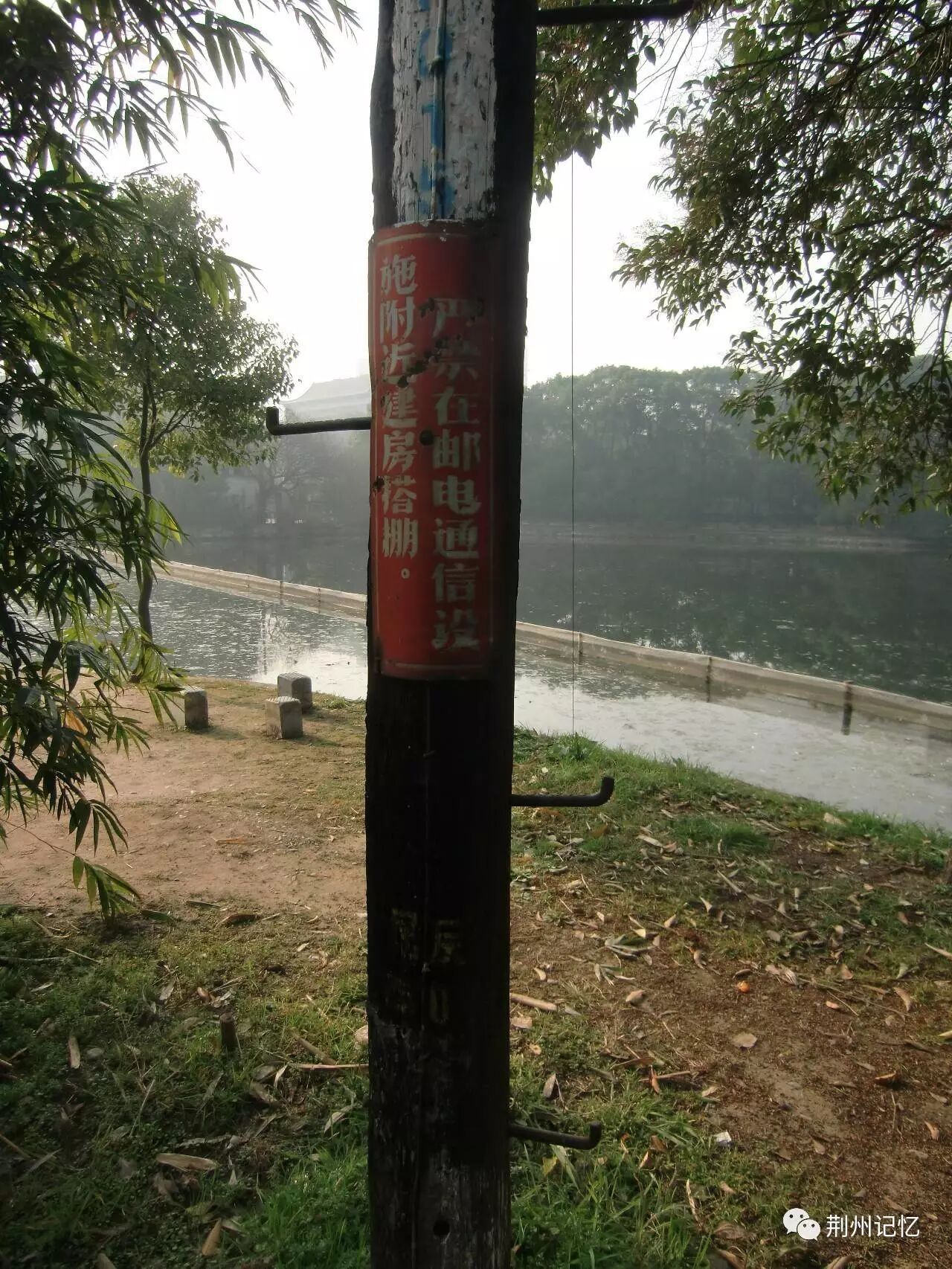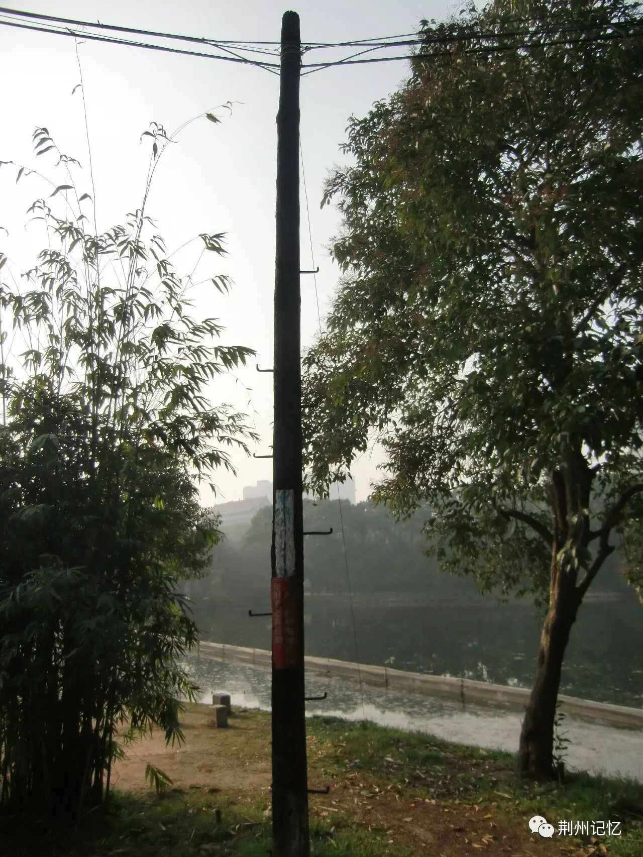 立在池塘边的木头电线杆已经很少见了,而带标语牌和踏脚拐的就更少了