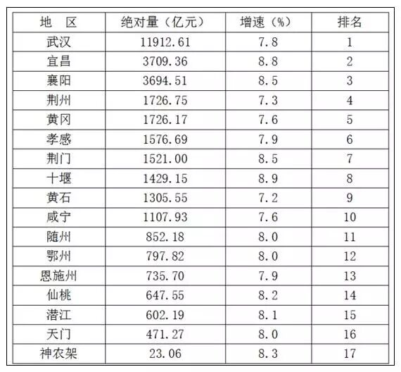 2月4日,湖北省统计局发布2017年1月统计月报,月报中公布了2016年全省主要经济指标和各市、州主要经济指标。