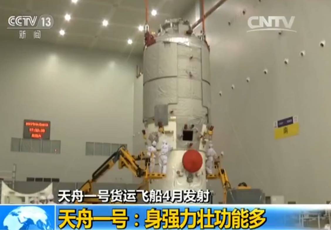 据中国载人航天工程办公室消息,天舟一号货运飞船按流程完成了出厂前所有研制工作,2月5日从天津港启程后,经过约一周的海陆运输,日前已安全运抵海南文昌航天发射场,开展发射场区总装和测试工作,计划于4月中下旬由长征七号遥二运载火箭发射升空。