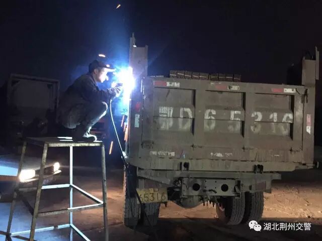1月3日上午,荆州市交通、公安等部门开展治超行动,对货车非法改装和超限超载等违规行为进行查处。