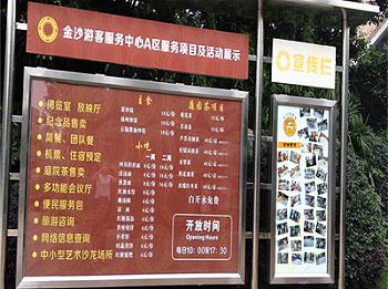 金沙博物馆游客服务中心宣传栏上写着明确的服务项目和价目消费情况