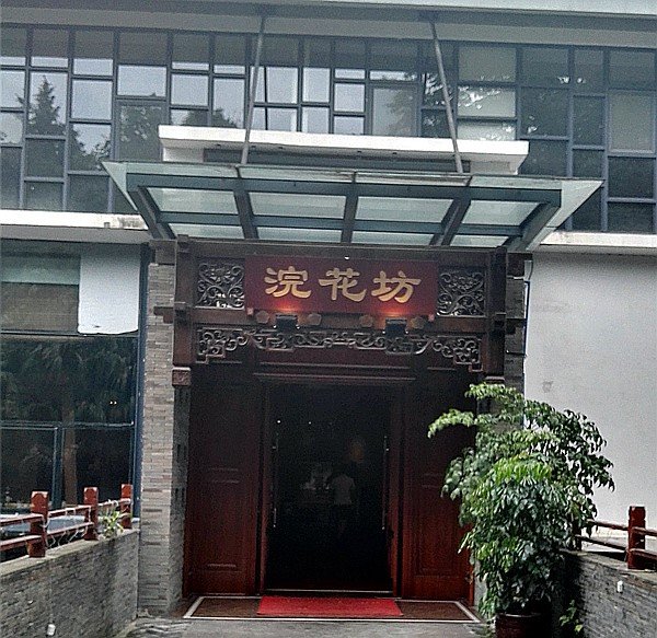 在成都杜甫草堂博物馆外诗圣文化园门口,曾经是一处叫做“蜀粹典藏”的高档餐厅。2015年8月改造为“浣花坊”餐厅后,价位调整为大众消费,还特别增加了大堂方便就餐选择,包间也不额外收费。