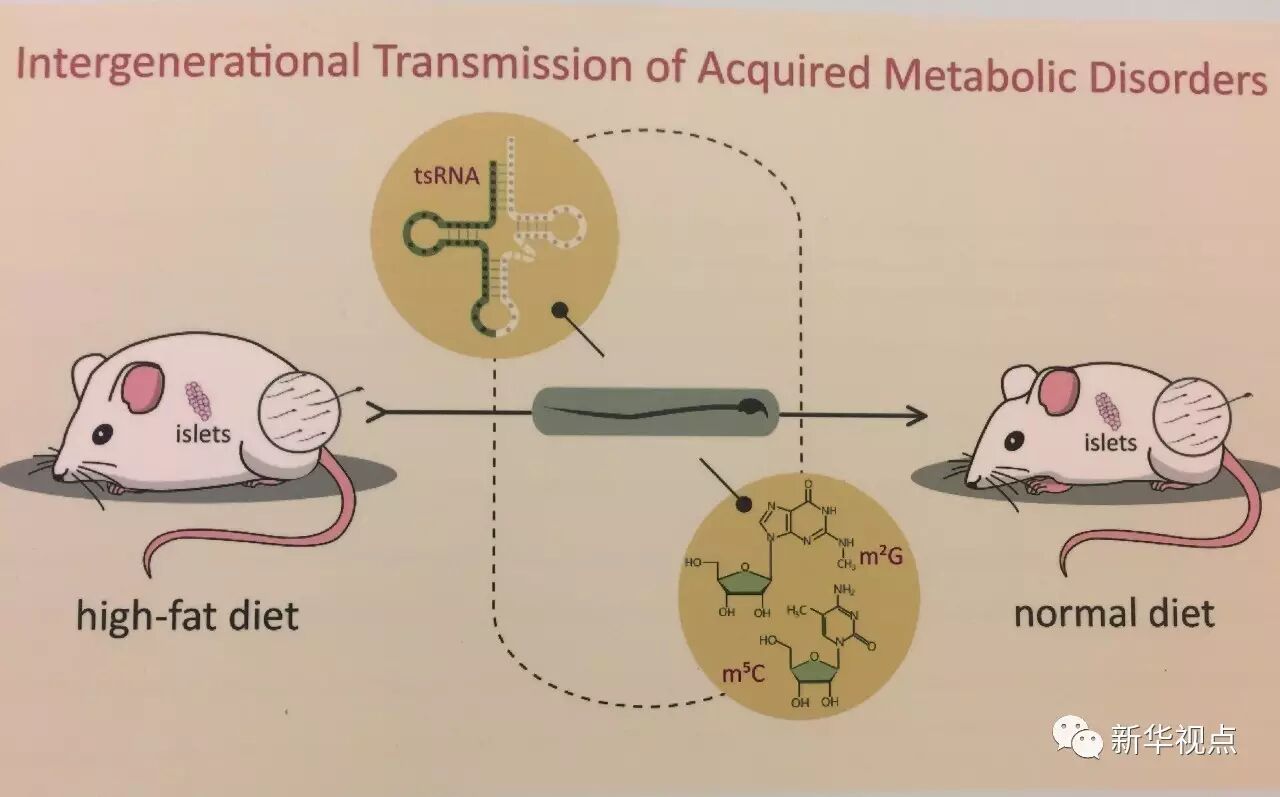我国科学家发现高脂饮食形成的代谢性疾病可通过精子携带的一种小RNA分子传递给后代。该研究证实,精子RNA可作为表观遗传信息的载体介导了获得性代谢疾病的传递,为研究获得性性状的跨代遗传现象开拓了全新视角。