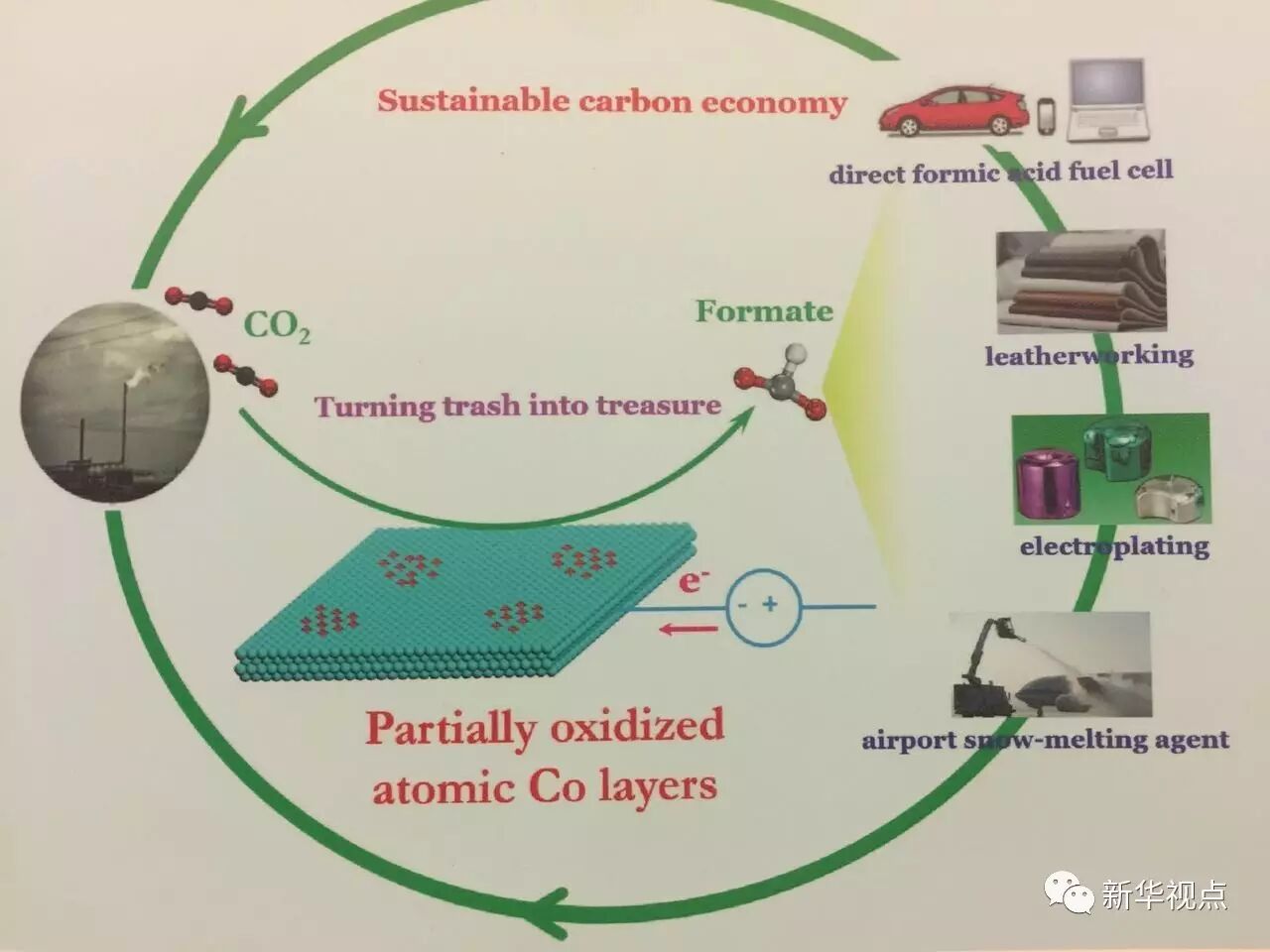 我国科学家的研究显示,在低过电位条件下,相对于块材表面的钴原子,原子级薄层表面的钴原子具有更高的电化学还原二氧化碳的本征活性和选择性。而部分氧化的原子层进一步提高了它们的本征催化活性。他们研制的钴/氧化钴杂化二维超薄结构催化剂可将二氧化碳高效清洁转化为液体燃料。这不仅提供了一种潜在的替代化石原料的清洁能源策略,并将有助于降低二氧化碳排放及其对气候造成的不利影响。
