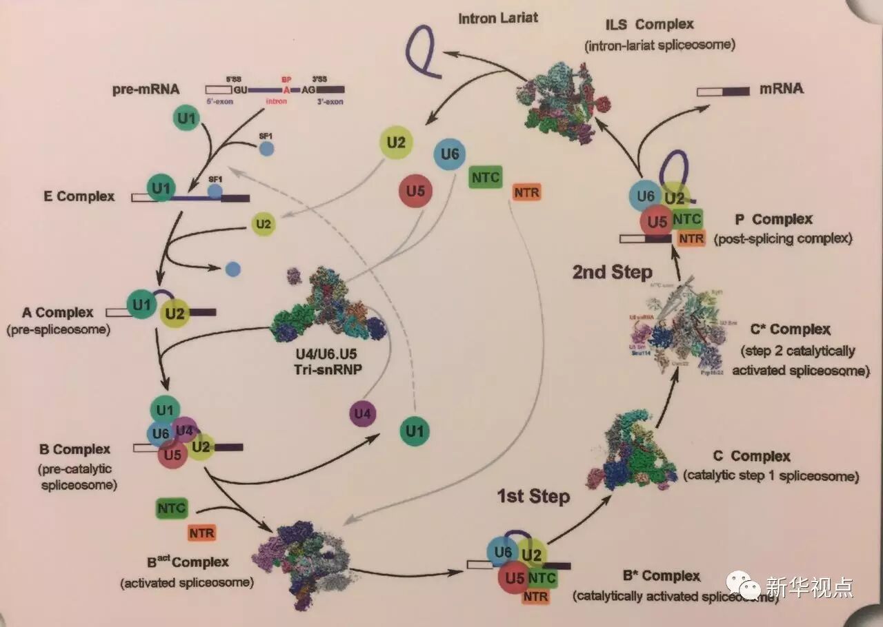 继2015年率先解析剪接体的结构之后,我国科学家在2016年又相继解析了3个关键工作状态下剪接体以及组装过程中一个剪接体复合物的原子级高分辨率结构。这4个高分辨率结构基本覆盖了RNA剪接的关键催化步骤,从分子层面解释了剪接体执行RNA剪接的机制,极大地推动了RNA剪接这一基础研究领域的发展。