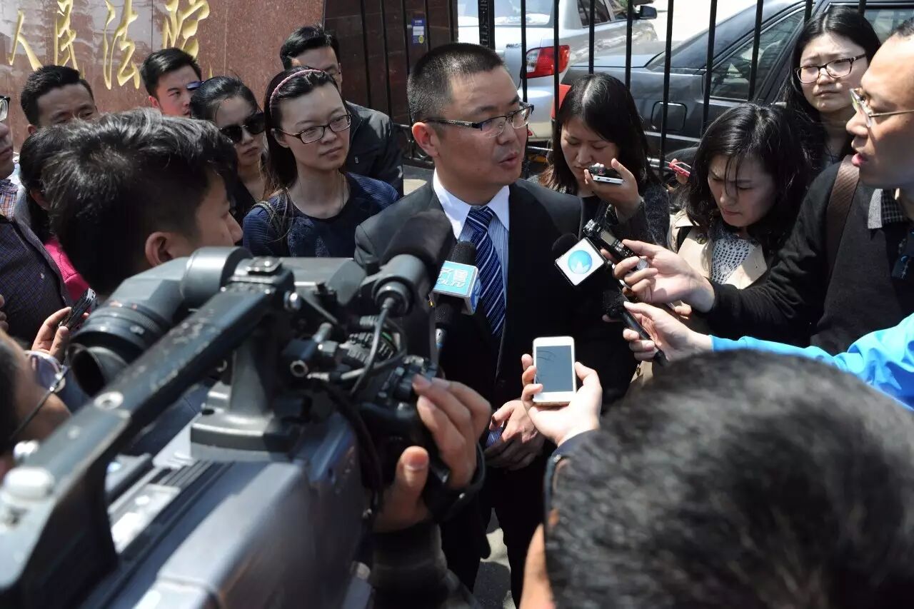 △2015年4月15日,此案开庭审理。原告陈超的代理律师李文谦接受采访。