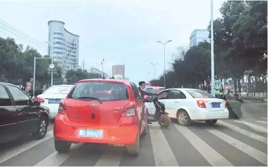 违法行为:晚高峰时段,江津路车流量较大,不少司机为图个人方便,占用非机动车道,然后通过斑马线路口驶入机动车道“插队”,虽然方便了自己,却给别的车辆造成拥堵。