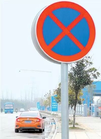 违法行为:荆州火车站人流量大,机动车较多。交管部门曾一度重拳整治该站附近路段的违停行为,但依然有车辆不按规定停车。图中橙色车辆在醒目交通标识牌下违停,不应该!