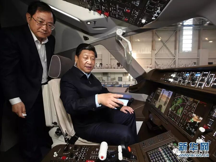 2014年5月23日至24日,中共中央总书记、国家主席、中央军委主席习近平在上海考察调研。这是23日下午,习近平在中国商飞设计研发中心C919大型客机展示样机驾驶室察看。新华社记者兰红光摄