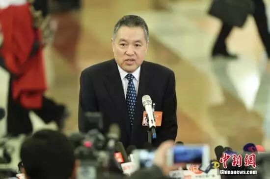 3月5日,十二届全国人大五次会议在北京人民大会堂开幕。国家工商总局局长张茅在“部长通道”接受采访。中新社记者 盛佳鹏 摄
