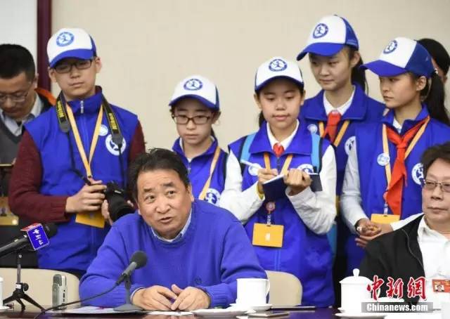 姜昆委员发言,小记者在现场采访。 中新社记者 侯宇 摄