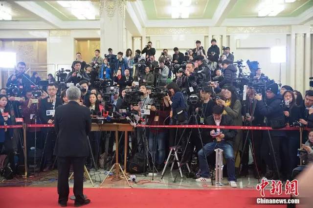 记者云集“部长通道”。 中新社记者 泱波 摄