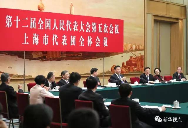 2017年3月5日,中共中央总书记、国家主席、中央军委主席习近平参加十二届全国人大五次会议上海代表团的审议。 新华社记者兰红光摄