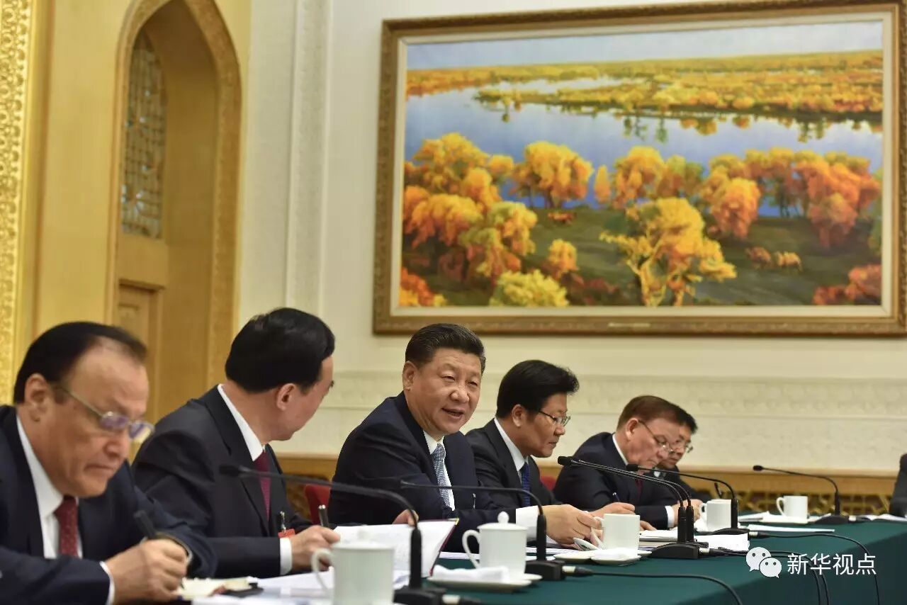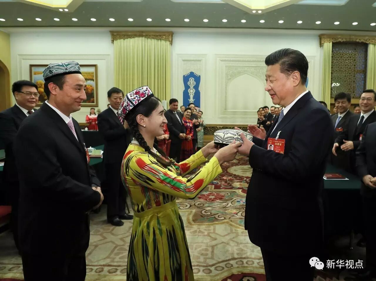 3月10日上午,人民大会堂新疆厅,习近平参加新疆代表团审议。