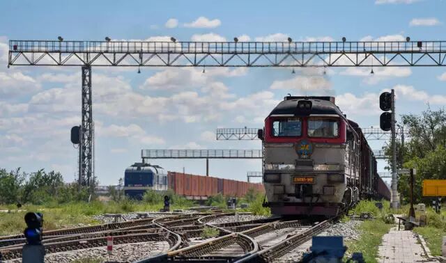 一列从哈萨克斯坦驶来的列车准备入境(2016年7月28日摄)。新华社记者 朱祥 摄