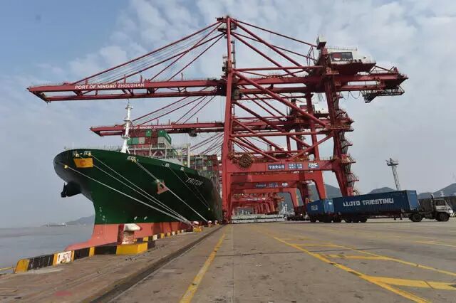 2016年,浙江宁波舟山港集装箱吞吐量达到2156万标准箱,其中“一带一路”沿线国家和地区集装箱吞吐量占总量的40%。(2016年2月16日摄)新华社记者 黄宗治 摄