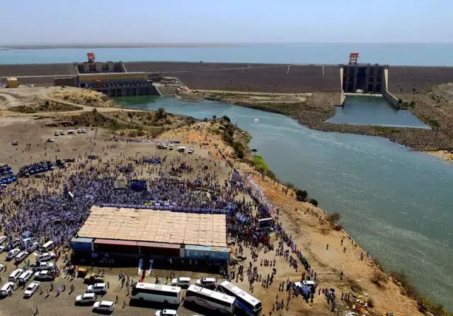 这是2月2日拍摄的苏丹上阿特巴拉水利枢纽正式发电庆典现场。当日,由中国长江三峡集团公司及中国水利电力对外公司联营体建设的苏丹上阿特巴拉水利枢纽项目首台发电机正式开始发电。新华社发(穆罕默德·巴比克尔摄)