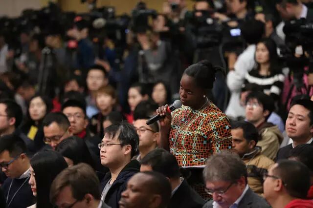 3月8日,十二届全国人大五次会议新闻中心举行记者会,这是外籍记者在提问。新华社记者 金立旺 摄
