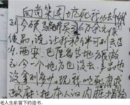 60岁老人花几十年的积蓄买保健品,眼看着钱基本泡汤,留下一封遗书结束了自己的生命,“我的的确确对不起大家……我再也不去上当了……”