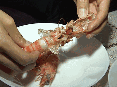 记者:是虾肉上的“衣”吗?