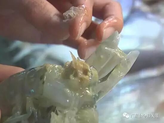 近日,记者接到家住广州市番禺区新水坑村的居民陈先生报料,说他在番禺南村综合市场花近50元购买了一斤冷冻虾,谁知回家剥开一看,发现里面有些透明的、类似于胶装的物体,当场吓了他一跳。他说当时这批虾的肉身很饱满,卖相非常好。