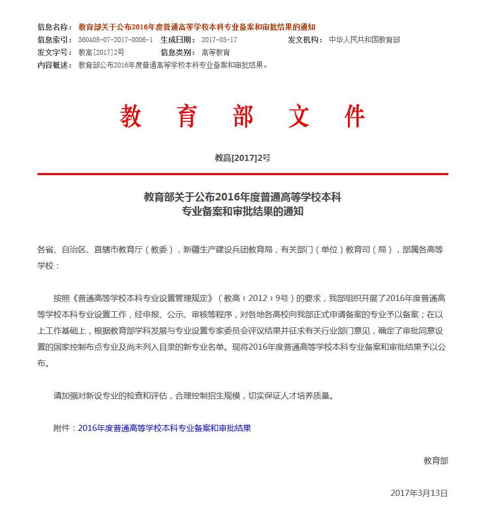第一批成功申请该专业的高校共有3所,为北京大学、对外经济贸易大学及中南大学,于2016年2月获得教育部批准。