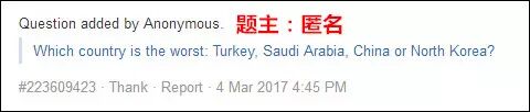 题主是一个匿名网友,他问世界上最差的国家是哪个,却偏偏罗列了包括中国在内的7个国家供挑选,呵呵……