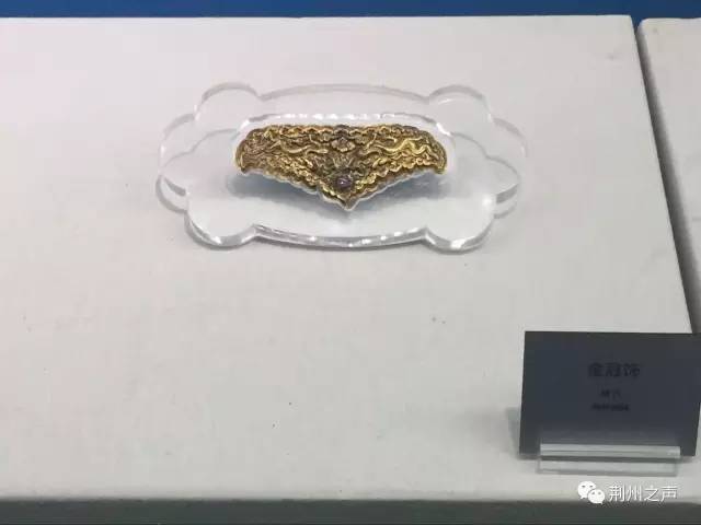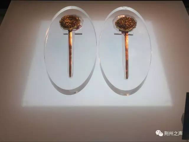 尤其珍贵的是,这些展品中有三件套国家一级文物是首次对外展出,分别是:荆州荆沙村衡山王 墓出土的明代镂空龙纹金簪、镂空凤纹金簪,以及钟祥出土的明代金带板。
