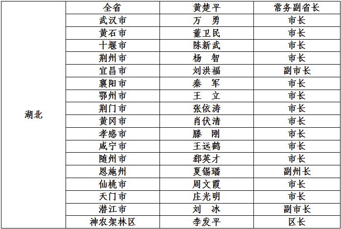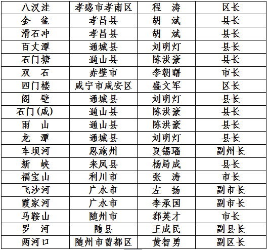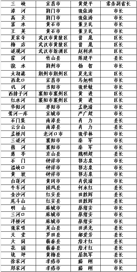全国重点防洪城市防汛行政责任人名单(湖北)