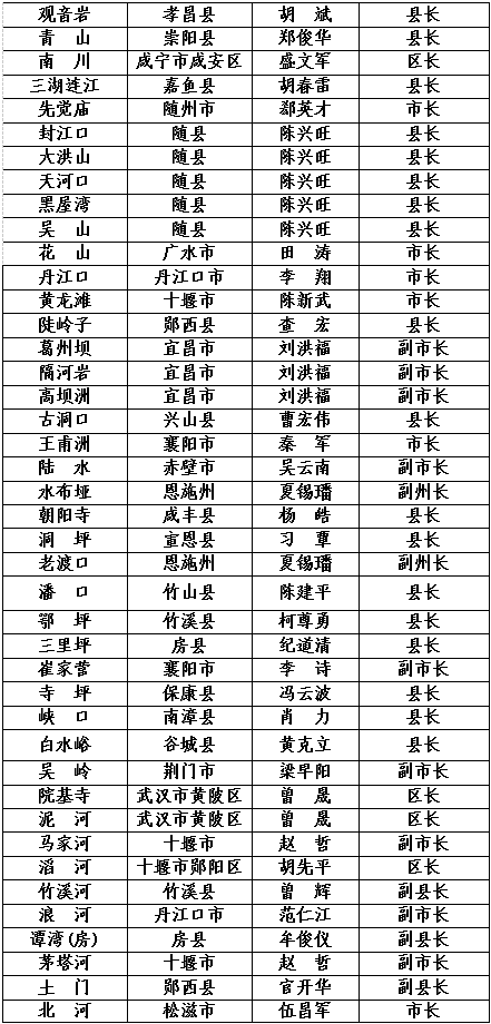 全国大型、防洪重点中型水库防汛行政责任人名单(湖北)