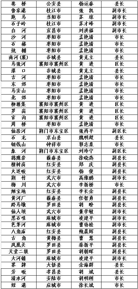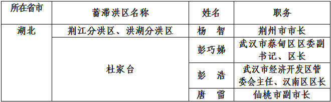 全国主要蓄滞洪区防汛行政责任人名单(湖北)