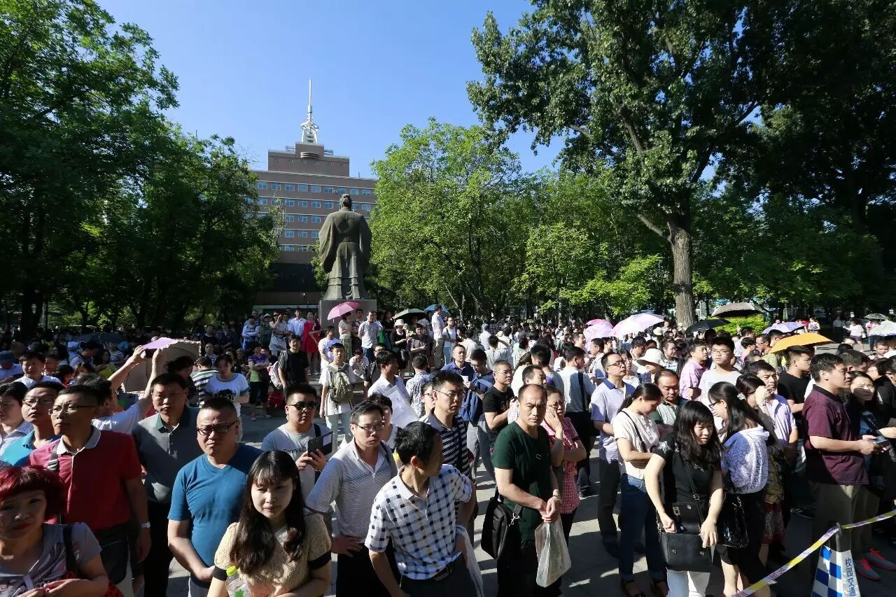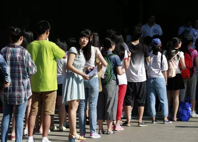 资料图片:2015年6月14日,在北京中国传媒大学考点,考生排队进入考场。