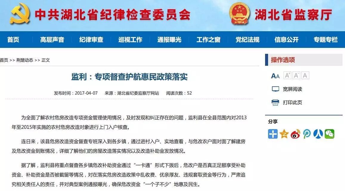 据了解,监利县将重点督查各乡镇危改补助资金通过“一卡通”形式下拨后,危改户是否真正足额享受补助资金、补助资金是否被截留等情况,对在落实危房改造政策中乱收费、优亲厚友、违规套取资金等行为,严肃追究相关责任人的责任,并对典型案例通报曝光,确保危改资金“一个子不少”地惠及民生。