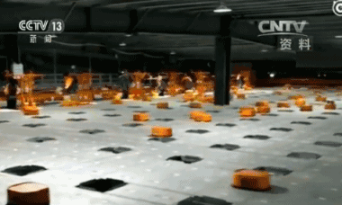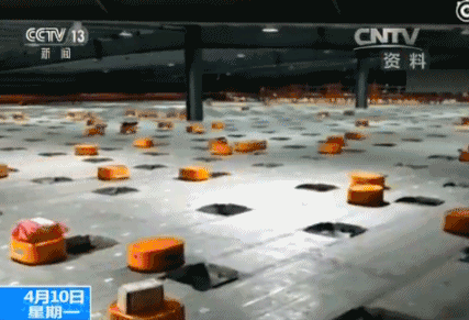 在堪比足球场大的平台上,密密麻麻的机器人与工人配合默契,忙而不乱,分拣着包裹……