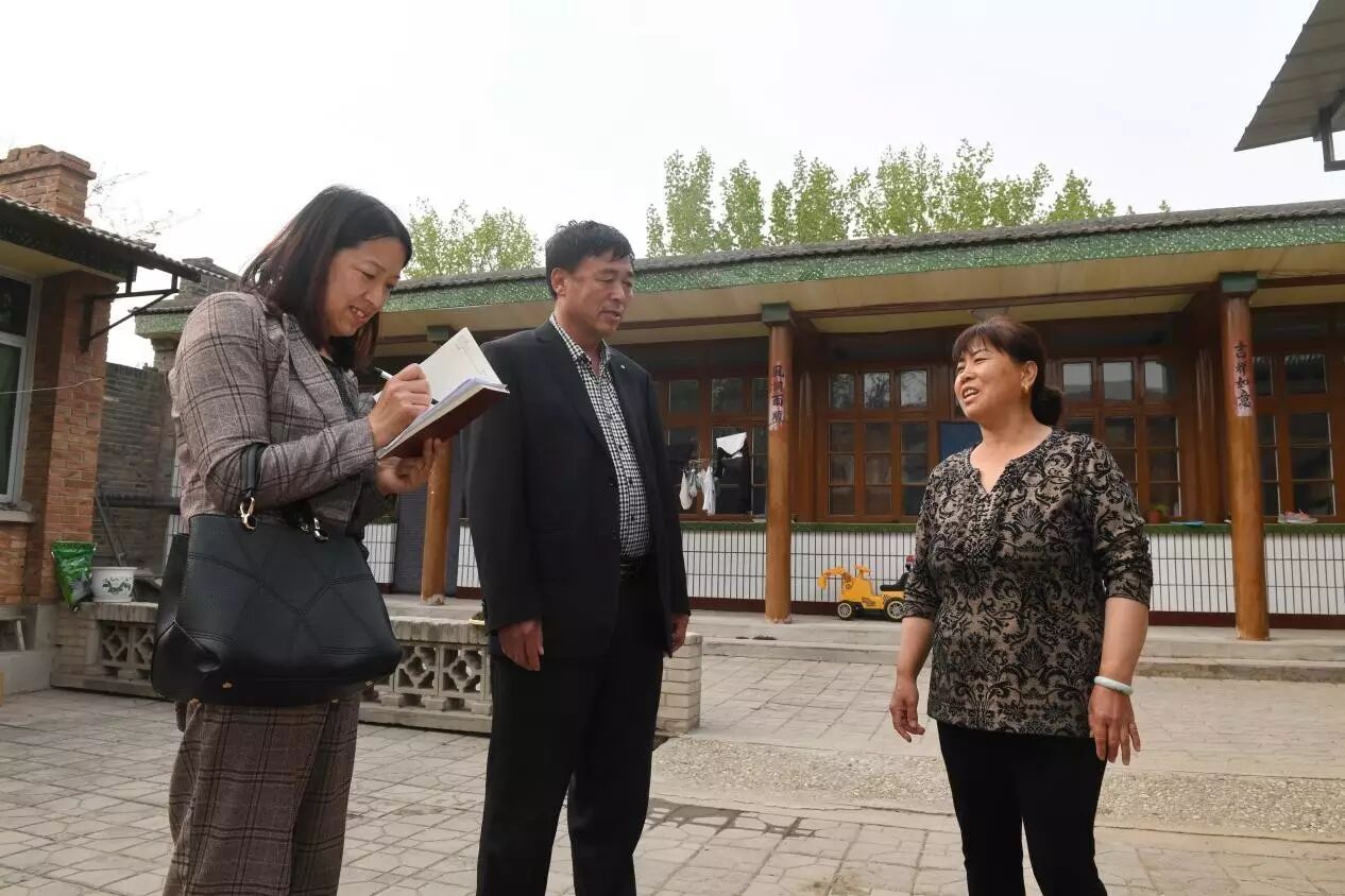 4月7日,雄县黄湾村村主任刘二奎(中)在村民家中走访。