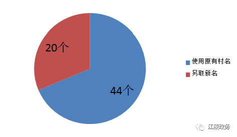 调整后的64个新村中,有44个村使用原有村名,20个村另取新名,另有3个社区另取新名。