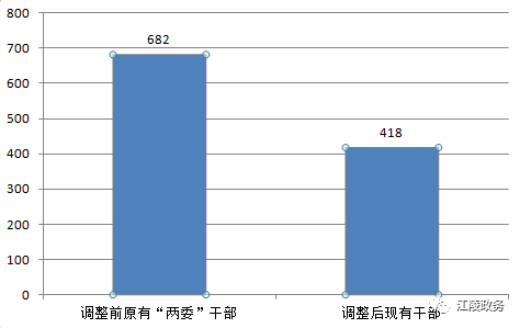 参与调整的144个行政村和6个社区原有“两委”干部682名,调整后的64个新村和5个新社区现有干部418名,离职270人,其中,235人安排担任村民小组长、网格员等村级公益事业岗位工作。