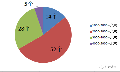 调整后,全县99个行政村中,1000-2000人的村14个,2000-3000人的村52个,3000-4000人的村28个,4000-5000人的村5个。