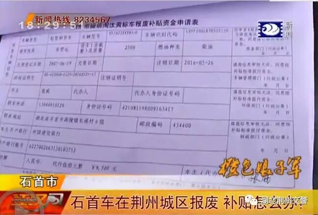 之后,张先生带着荆州市物资再生利用管理总公司开具的《报废汽车回收证明》和机动车行驶证、前后号牌等相关资料,到荆州市公安交通管理局车辆管理所办理了《机动车注销证明》,并填写了报废补贴资金申请表。但因为张先生的车是在石首上的牌照,他需要回到石首办理补贴。