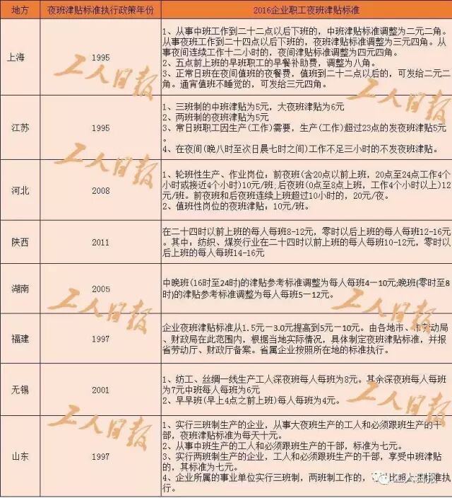 关于夜班津贴,国家并未出台过规定,各地则有相应的标准,但呈现参差不齐的状况。