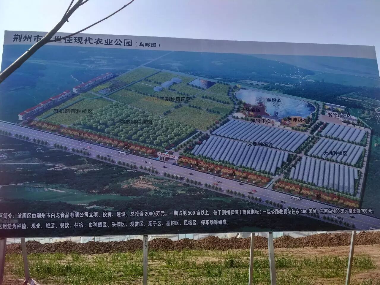 荆州市农业佳现代农业公园位于荆松一级公路旁,松滋与弥市交界处。该公园将分为种植区、采摘区、亲子区、观赏区、垂钓区、民宿区、停车等区域,以实现种植、观光、旅游、餐饮、食宿等全方面发展。