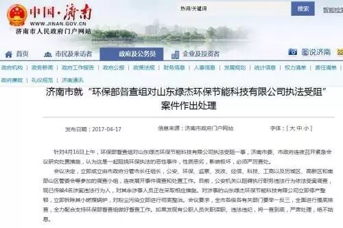 据济南市人民政府官网消息,济南市委、市政府认为这是一起阻挠环保执法的恶性事件,性质恶劣,影响极坏,必须严厉查处。