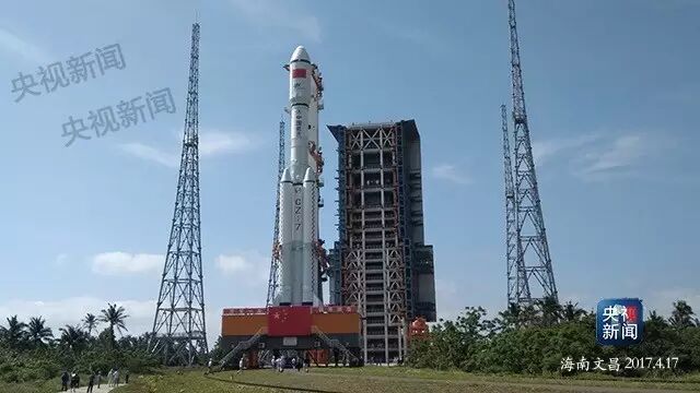 据中国载人航天工程办公室消息,今天早上7时30分,承载着长征七号遥二运载火箭与天舟一号货运飞船组合体的活动发射平台驶出总装测试厂房,平稳行驶约2个半小时之后,垂直转运至发射区。后续,将在发射区开展天舟一号货运飞船与长征七号遥二运载火箭功能检查和联合测试工作,完成最终状态确认后,火箭加注推进剂,计划4月20日至24日在文昌航天发射场择机发射。