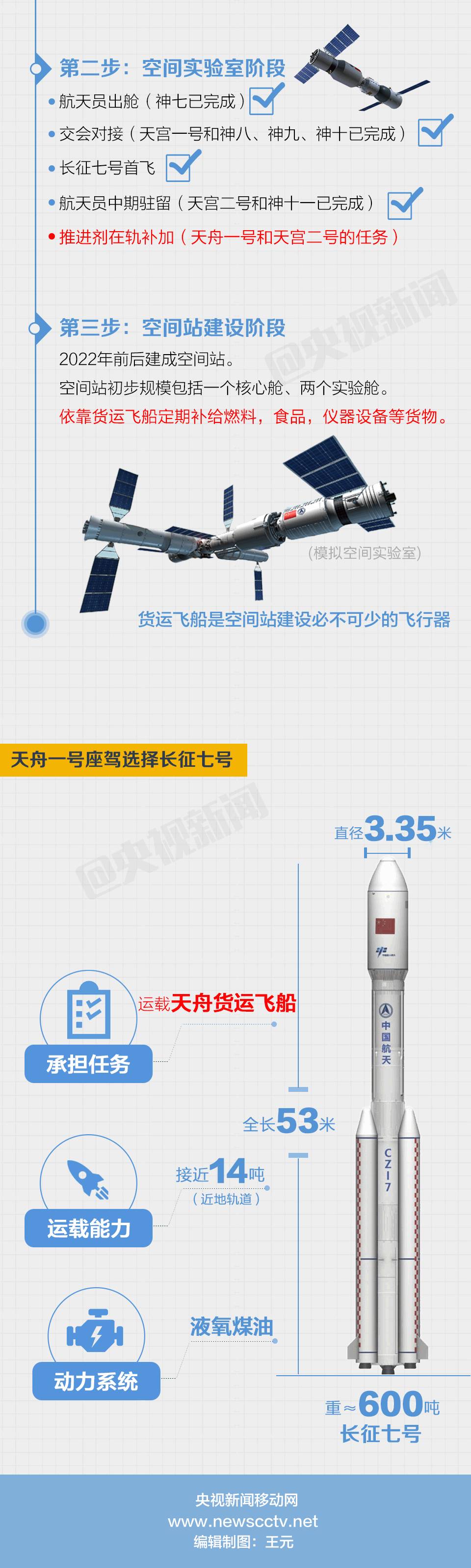 天舟一号是我国自主研制的首艘货运飞船,将与天宫二号空间实验室完成交会对接,实施被称作“太空加油”的推进剂在轨补加,为中国2022年前后建成空间站“搭桥铺路”。垂直转运的顺利完成,标志着天舟一号飞行任务正式进入发射阶段。