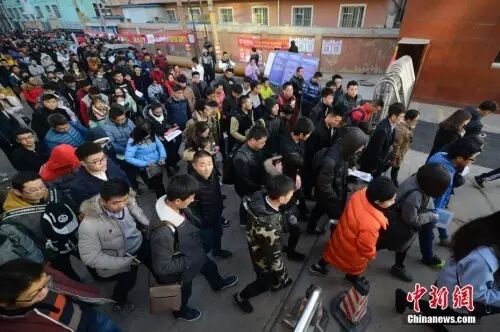 资料图:2016年11月27日,福州一公务员国考笔试考点,考生在寻找考场。张斌 摄