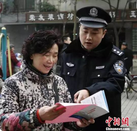 资料图 成都警方在一次行动中向民众发放资料 成公宣 摄