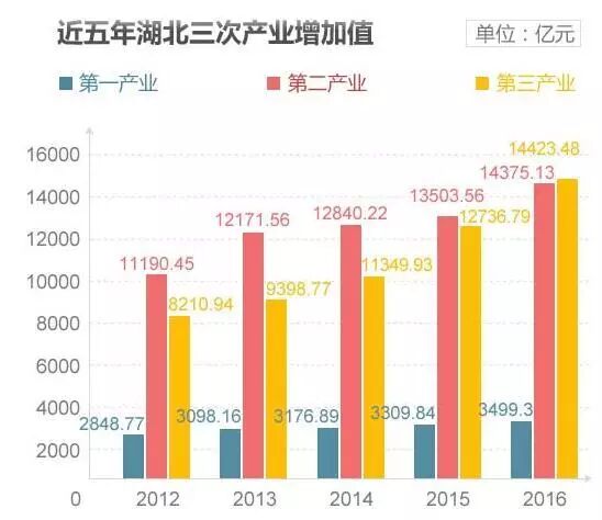 △ 近五年湖北三次产业增加值(图片来源:湖北日报网)