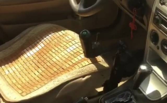 ⬆️车辆改装人员在方向盘上装了一个把手,遇到上述情况只要用左手抓住把手,加大手臂摆动幅度,就可以大幅度转弯了。